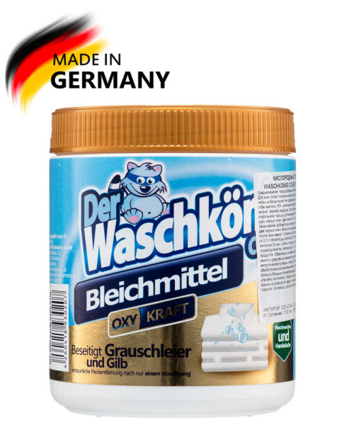 پاک کننده لکه و بو Der Waschkönig Oxy حتی لکه های سرسخت را نیز پاک می کند. بی زحمت و بدون هیچ اثری. سفید کننده پودر اکسیژن Der Waschkonig پاکسازی موفقیت آمیز لکه های سرسخت را تضمین می کند و به بازیابی و حفظ رنگ سفید لباس ها کمک می کند. می توان از آن به عنوان افزودنی پودر برای شستشوی دستی یا اتوماتیک یا به عنوان یک عامل نرم کننده برای آلودگی های سخت و لکه های سرسخت استفاده کرد. حاوی کلر نیست، بنابراین برای پارچه ها بی خطر است. روی وسایل پشمی، ابریشمی و چرمی استفاده نشود. به عمق الیاف نفوذ می کند و حتی مقاوم ترین لکه ها را از بین می برد. برای بهترین نتیجه، محصول را روی لکه بمالید یا با مواد شوینده خود اضافه کنید. هنگام شستشو به لطف فرمول فعال خود، نه تنها از شر لکه های سخت خلاص می شود، بلکه نتایج سفید کنندگی نیز ارائه می دهد"